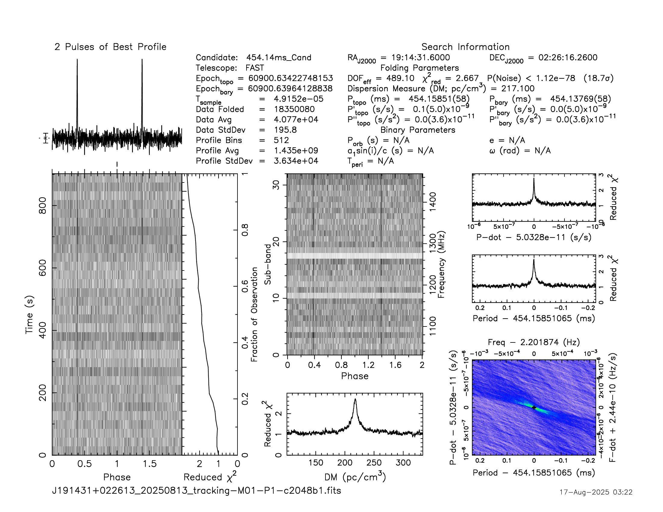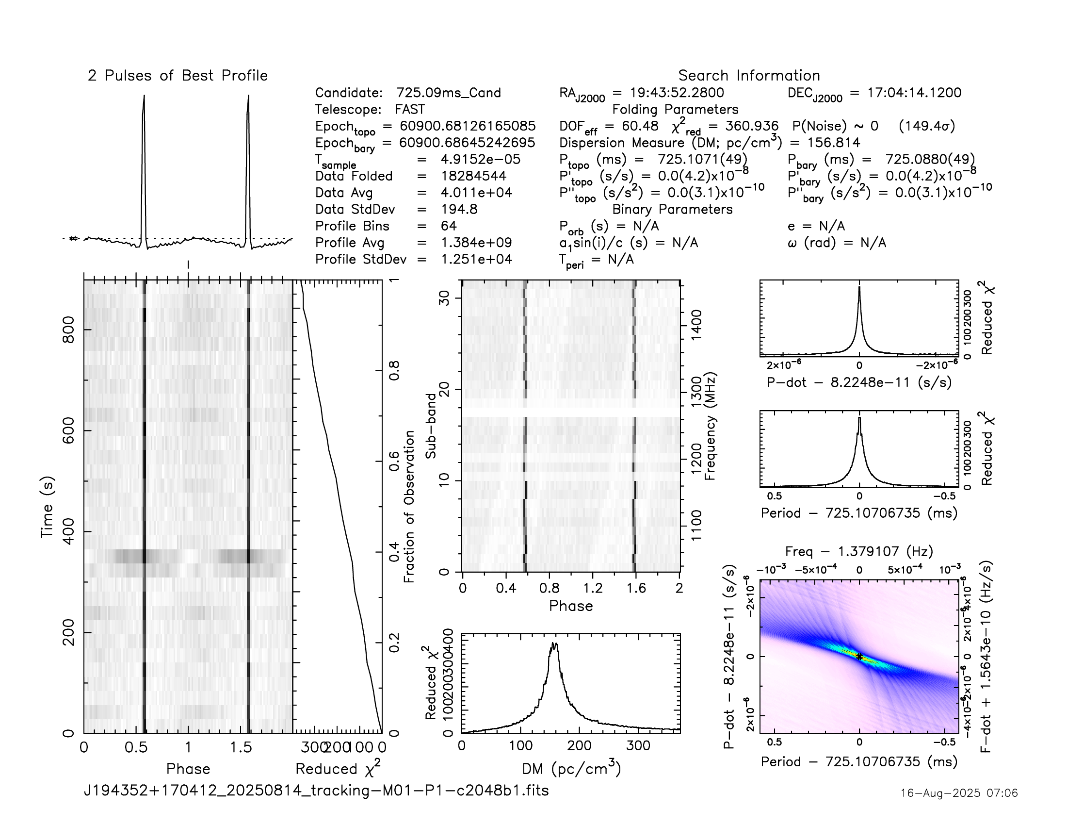 J2052+4421g | gpps0019 | 0.37531 | 543.8 | 20:52:49 | +44:21 | 20200219 | 20200331; 20200607; 20200812 | 20200928 | FollowUP=JingWC; 20211027updateRA; 20241124updateDM | hww+21; |